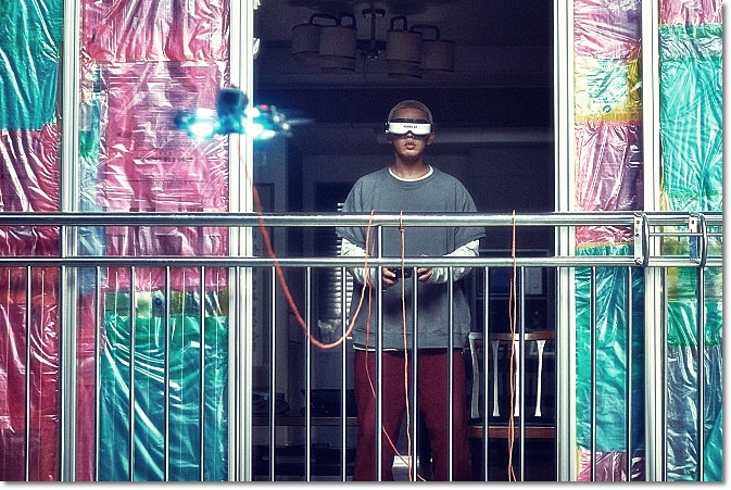 여기서 유아인은 드론으로 좀비를 괴롭히면서, 올라오는 것을 방해하는 유빈이 정신을 차리기를 기다리죠.