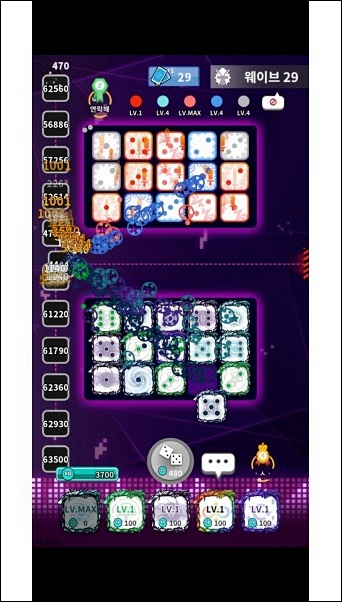 랜덤 다이스의 경우 다양한 특성의 주사위들을 설치하여 몰려오는 적을 막는 타워 디펜스 게임이에요.